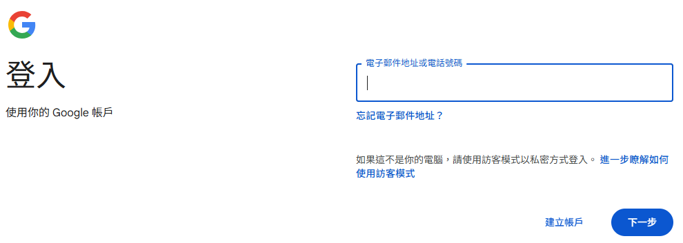 如瀏覽器已登入本校Email 帳號,則會出現如下訊息,可切換另一個個人 Gmail 帳戶登入。